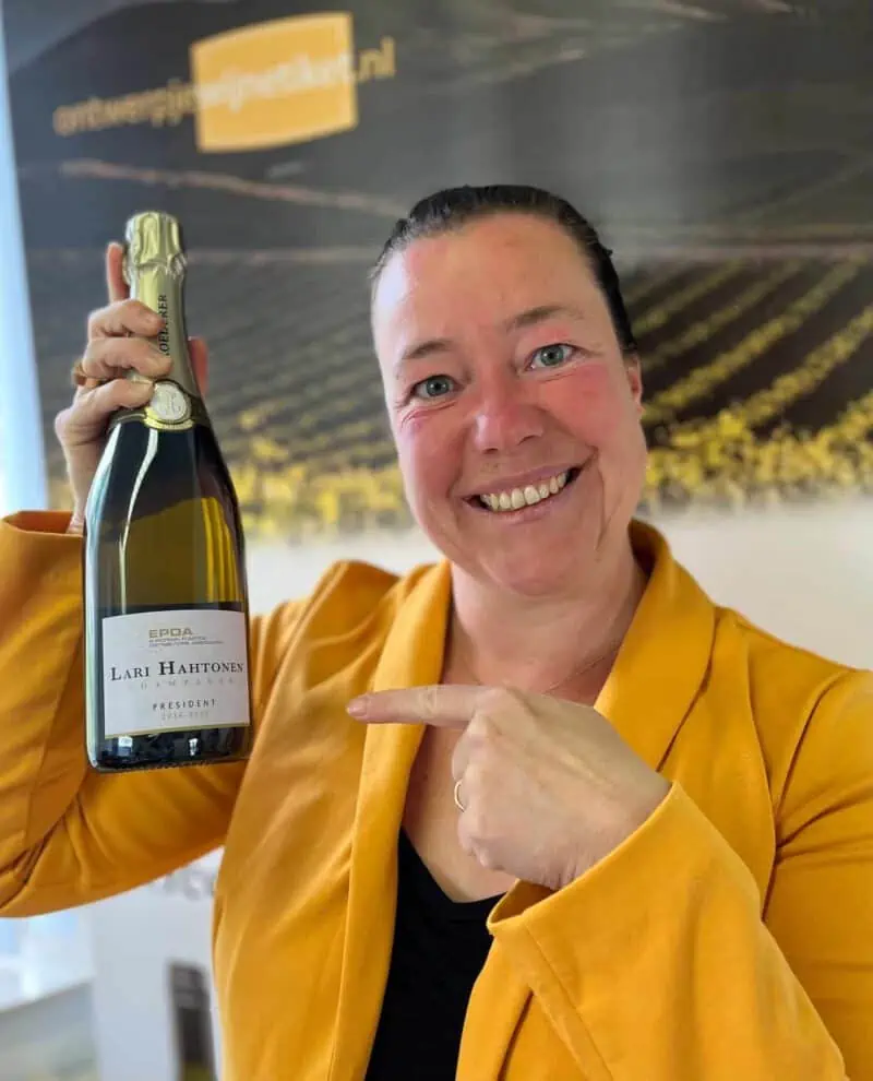 Deze keer maakten wij een champagne met een persoonlijk etiket. Een afscheidscadeau met een feestelijk tintje!