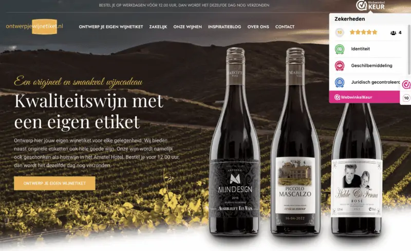 Sinds kort zijn wij trotse eigenaar van het keurmerk Webwinkelkeur. Hiermee kunnen we reviews verzamelen en aan onze klanten laten zien. Wat we ook belangrijk vinden van het keurmerk Webwinkelkeur is dat we hiermee natuurlijk ook uitstralen dat wij een serieuze webwinkel zijn. Want dat is Ontwerpjewijnetiket.nl! Om dit keurmerk te krijgen, werd onze webwinkel namelijk goed doorgelicht. Na een paar kleine aanpassinkjes hier en daar zijn we goed bevonden: Ontwerpjewijnetiket.nl goedgekeurd, joepie!
